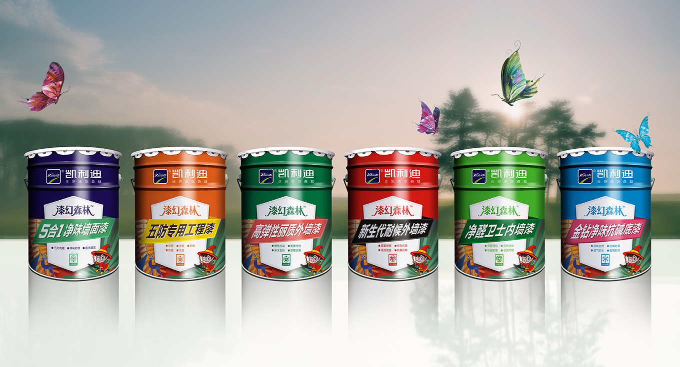 凯利迪旗下九大品类产品包含:节能反射隔热涂料、乳胶漆类别、防水涂料、真石漆、地坪漆、腻子粉类别、植物硅藻泥、水性漆、砂浆类别、建筑外墙涂料,依据企业战略新品规划,金克来为凯利迪旗下三大核心品类进行系统性开发策划设计,乳胶漆类别、腻子粉类别以及砂浆类别。