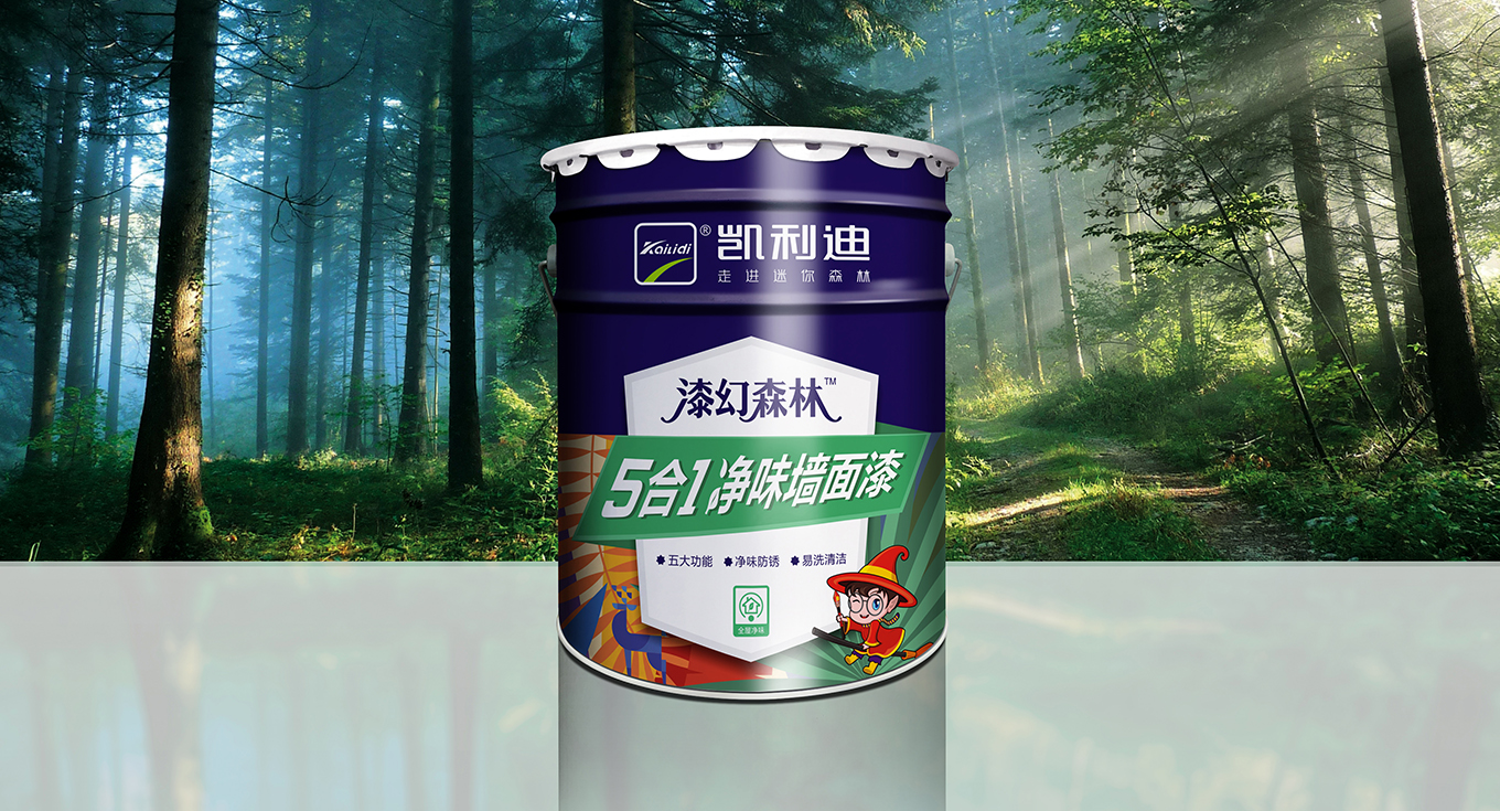 原乳胶漆类别品牌名称在传播途径中存在的问题就是一直沿用“凯利迪”进行传播,混淆了品牌传播的错误认知,故此结合品牌战略定位以及产品线规划,为其乳胶漆品类进行重新命名,命名力求形成产品品牌的自传播价值;惯用大众所熟知的奇幻电影《奇幻森林》,再将品类产品固有属性“漆”巧妙嫁接,最终形成了独居画面代入感的品牌名称“漆幻森林”。腻子粉类别以及砂浆类别的品牌名称依旧保留,但需对其进行视觉形象改造,三大核心品类形象最终呈现。